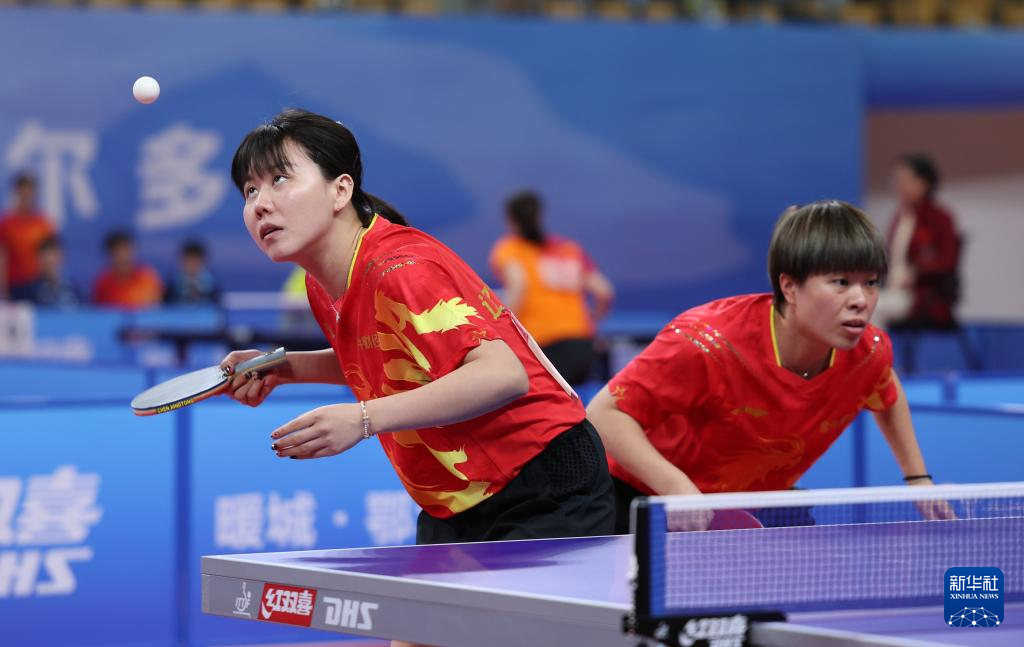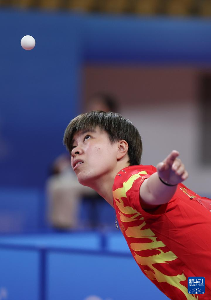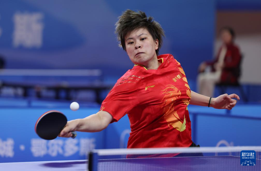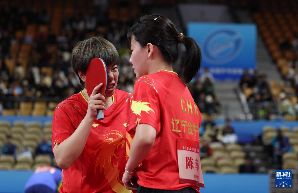 当日,在内蒙古鄂尔多斯举行的2024年全国乒乓球锦标赛女子团体八分之一决赛中,辽宁金牛队3比1战胜河南队,晋级八强。
