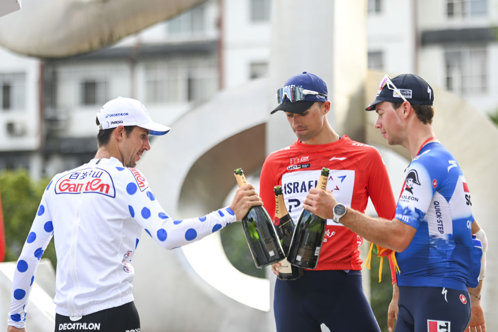 新华社南宁10月17日电(记者张卓文、曹祎铭)17日,2024环广西公路自行车世界巡回赛第三赛段(靖西-巴马)开赛,来自以色列博泰车队的伊森·维尔农夺得该赛段冠军,并穿上代表总成绩第一的红衫、代表“冲刺王”的蓝衫和代表最佳年轻车手的白衫。