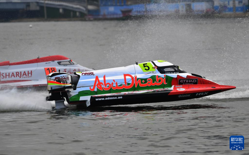 10月18日,阿布扎比队阿联酋选手塔尼·阿·卡兹驾驶摩托艇在冲刺赛中。