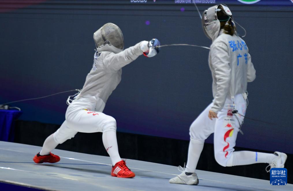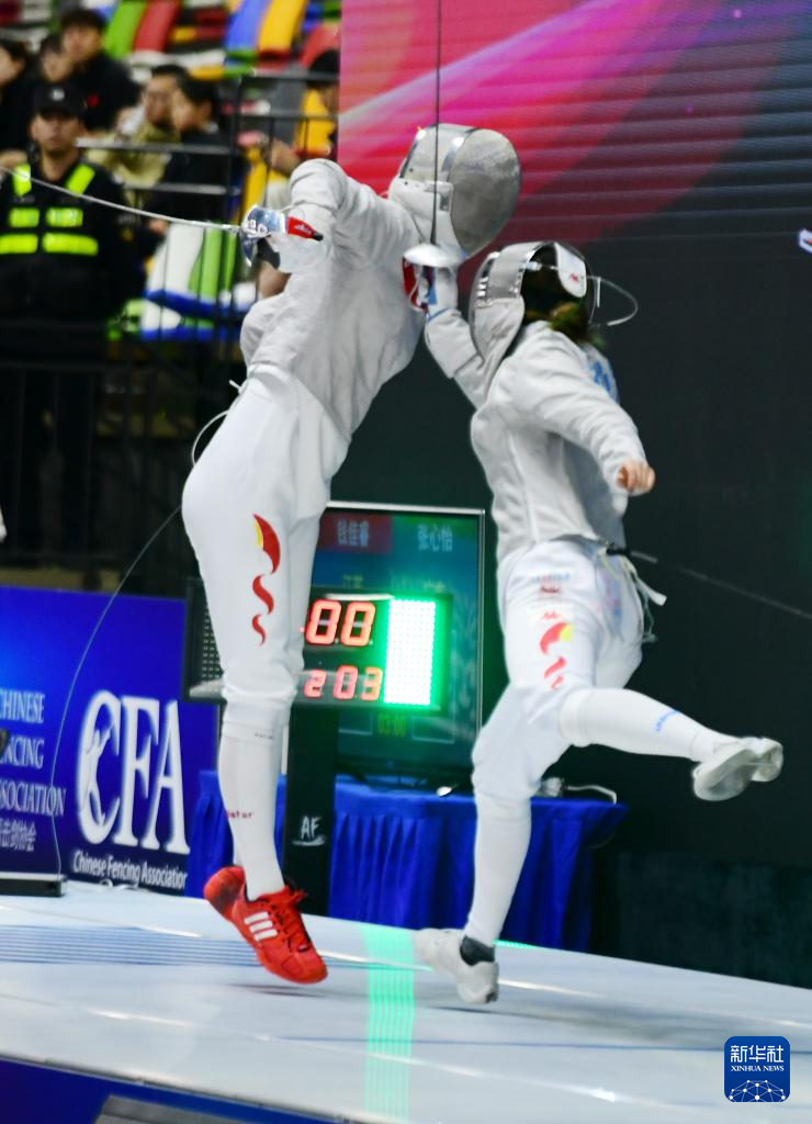 当日,在江苏无锡举行的2024年全国击剑锦标赛女子佩剑个人决赛中,江苏队选手钱佳睿15比4战胜广东队选手张心怡,夺得冠军。