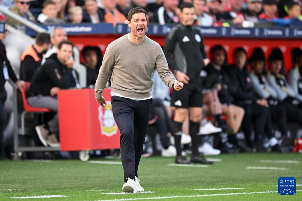 10月19日,勒沃库森队主教练阿隆索在场边指挥。