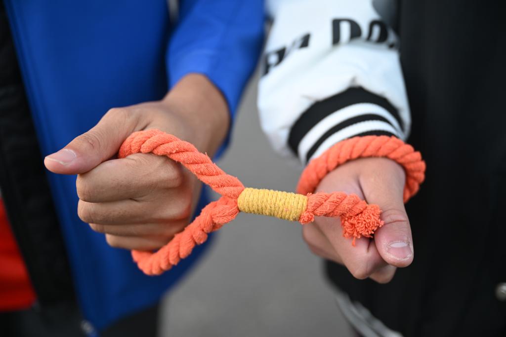这是陪跑员团队手工编制的用于引导方向的陪跑绳(10月20日摄)。新华社记者 孙凡越 摄