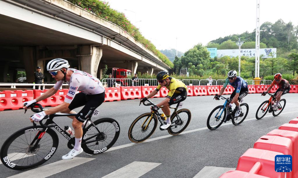 10月20日,阿联酋航空车队比利时车手蒂姆·韦伦斯(左一)在比赛中骑行。