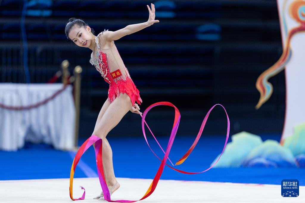 10月22日,河北队选手李迎在少年A组个人带操决赛中。最终,她以总分23.10分的成绩获得季军。