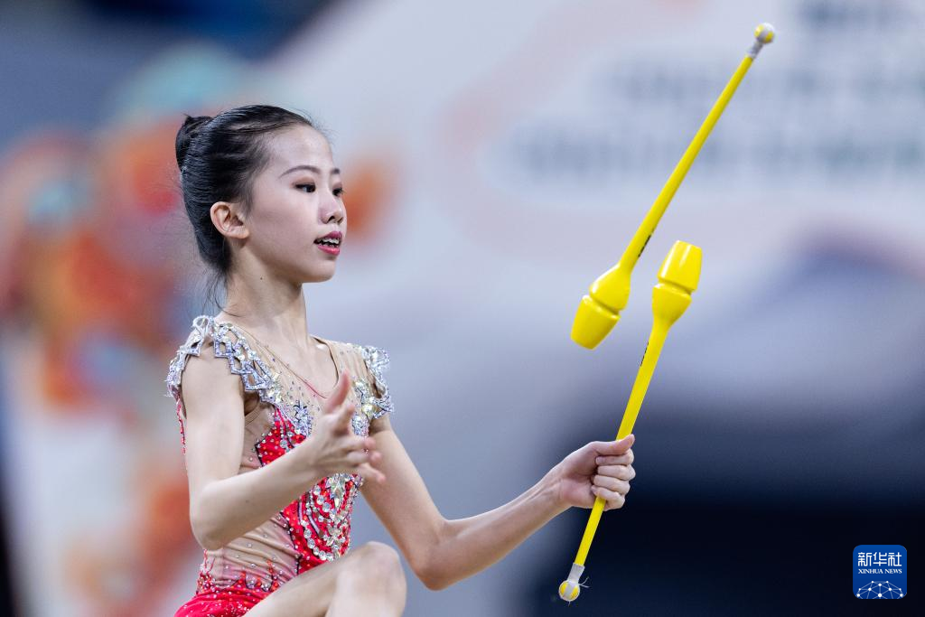 10月22日,重庆队选手孟芷嫣在少年A组个人棒操决赛中。最终,她以总分27.00分的成绩获得冠军。