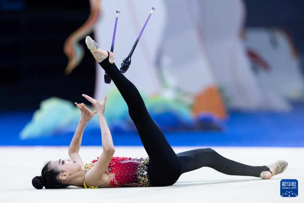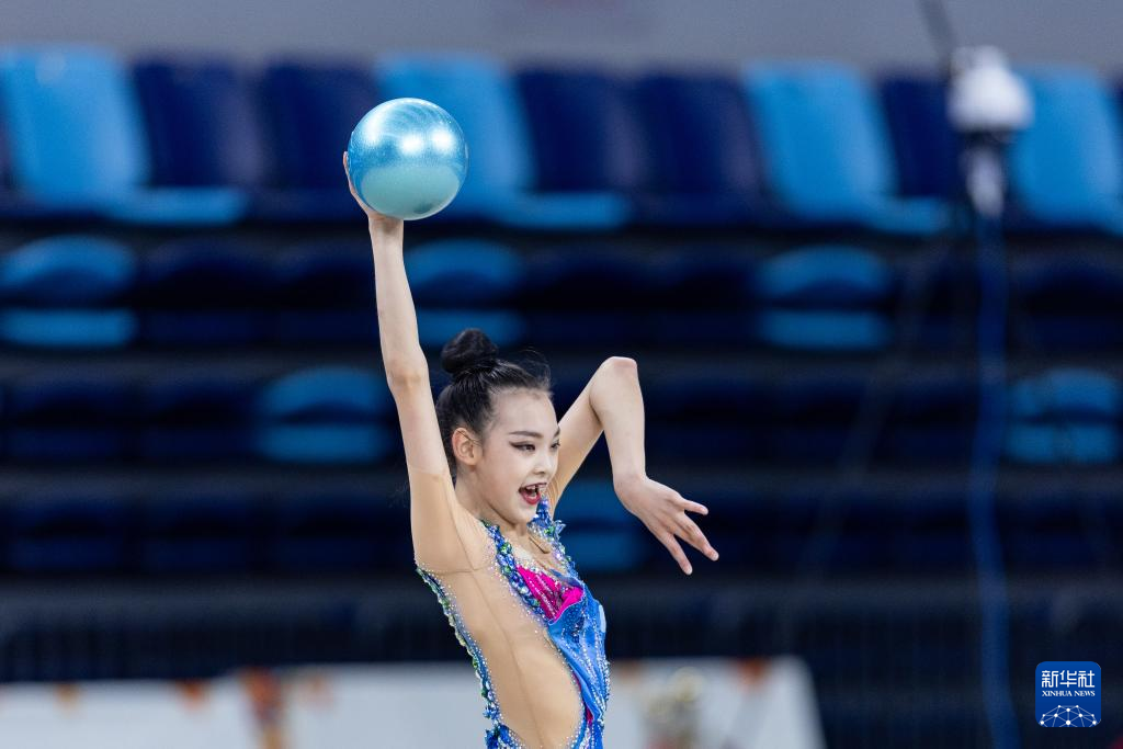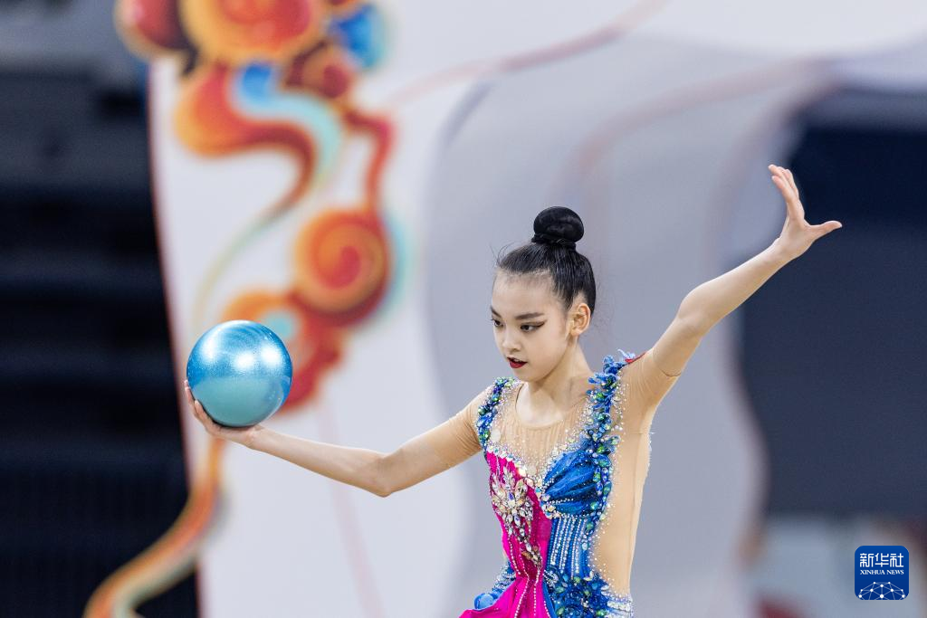 10月22日,重庆队选手孟芷嫣在少年A组个人球操决赛中。最终,她以总分25.95分的成绩获得冠军。