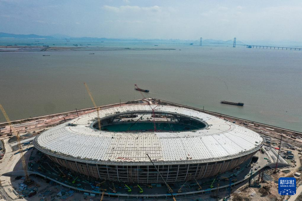 10月23日,南沙全民文化体育综合体综合体育场正在进行屋面安装施工。