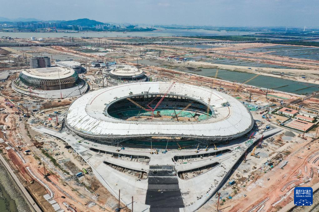 这是10月23日拍摄的南沙全民文化体育综合体。该综合体紧邻即将通车的深中通道南沙线,这里到深圳车程将缩短至20分钟(无人机照片)。