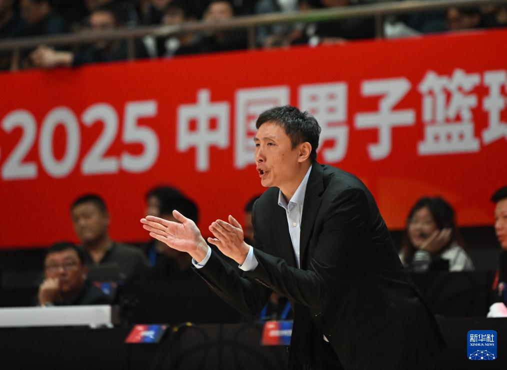 10月22日,上海久事队主教练刘鹏在场边指挥。