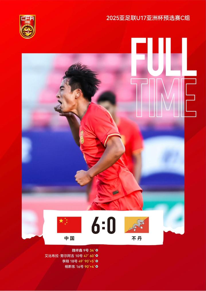 易边再战,中国队在短时间内由艾比布拉·努尔阿吉和李翔连入两球。第60分钟,艾比布拉完成一脚精彩的小角度弧线球破门。胜券在握的中国队此后继续施压,杨黔东和李翔在补时阶段又进两球,将比分定格在6:0。