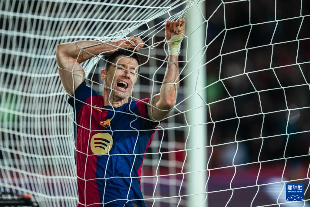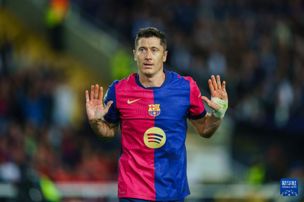 10月23日,巴塞罗那队球员莱万多夫斯基在比赛中。