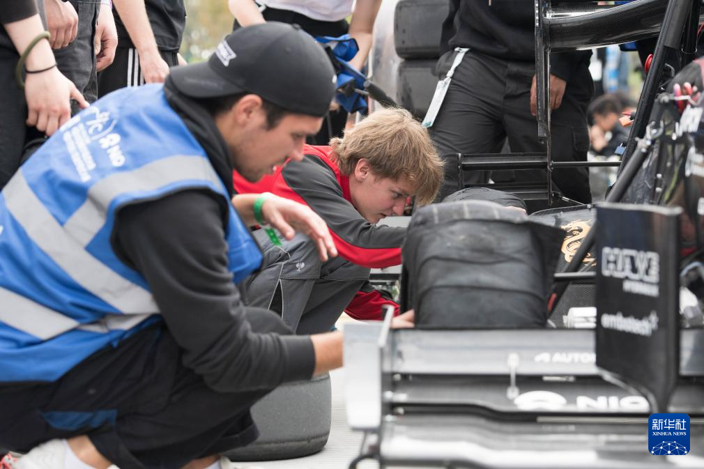10月25日,柏林工业大学车队成员在调试赛车。