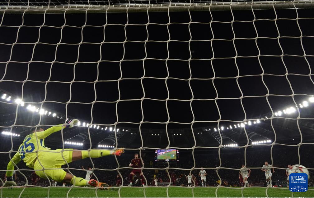 10月24日,罗马队球员多夫比克在比赛中主罚点球得分。
