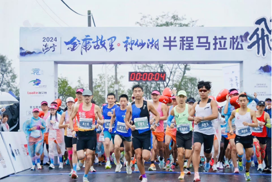 10月26日7:30,2024海宁·金庸故里神仙湖半程马拉松赛在海宁市袁花镇金庸故居鸣枪起跑。赛事吸引了来自肯尼亚及国内上海、湖北、江苏、安徽、江西、浙江等地的约1200名运动员参与。