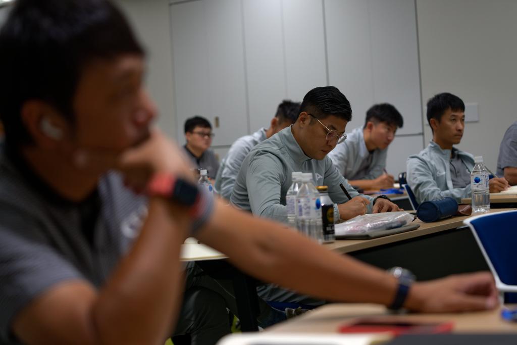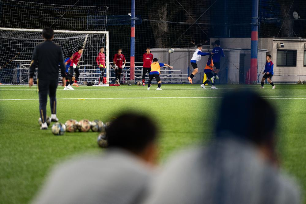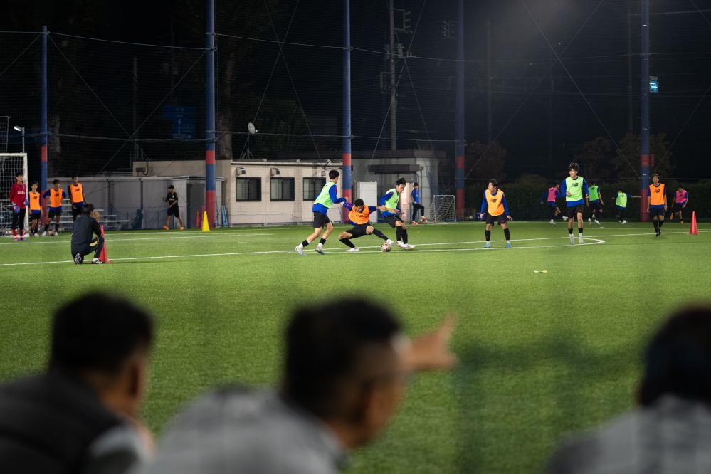 紧挨着U10场地进行训练的是东京FC的U18梯队,一批远道而来的访客正在观摩他们的日常训练。中国足协近日举办精英青训教练员国际交流培训班,24名来自全国各地的青训教练员赴日本东京与日本足协、东京FC、东京绿茵足球俱乐部等进行了交流学习。其中一项便是观摩职业俱乐部青训梯队的训练课。