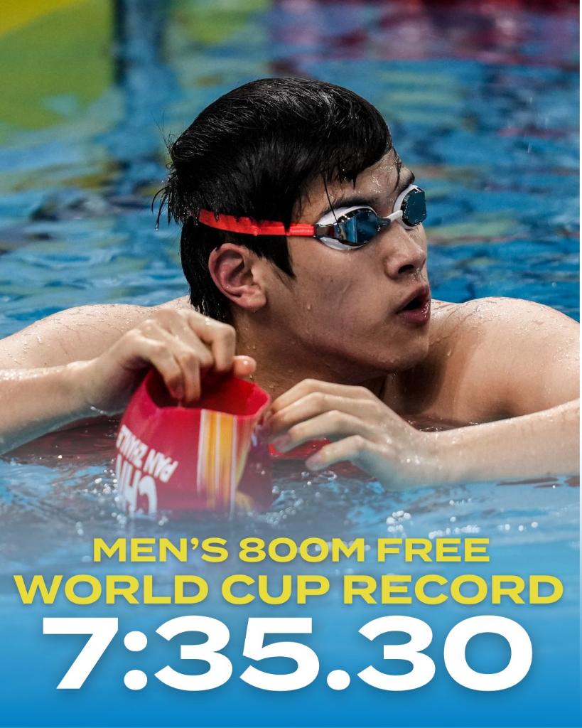 男子800米自由泳比赛,以赛代练的潘展乐在后半程发力,以7分35秒30打破赛会纪录的成绩夺得个人本站赛事第二金。女子50米蛙泳比赛中,唐钱婷以29秒03的成绩夺得金牌,这是她在仁川站的第二枚金牌。