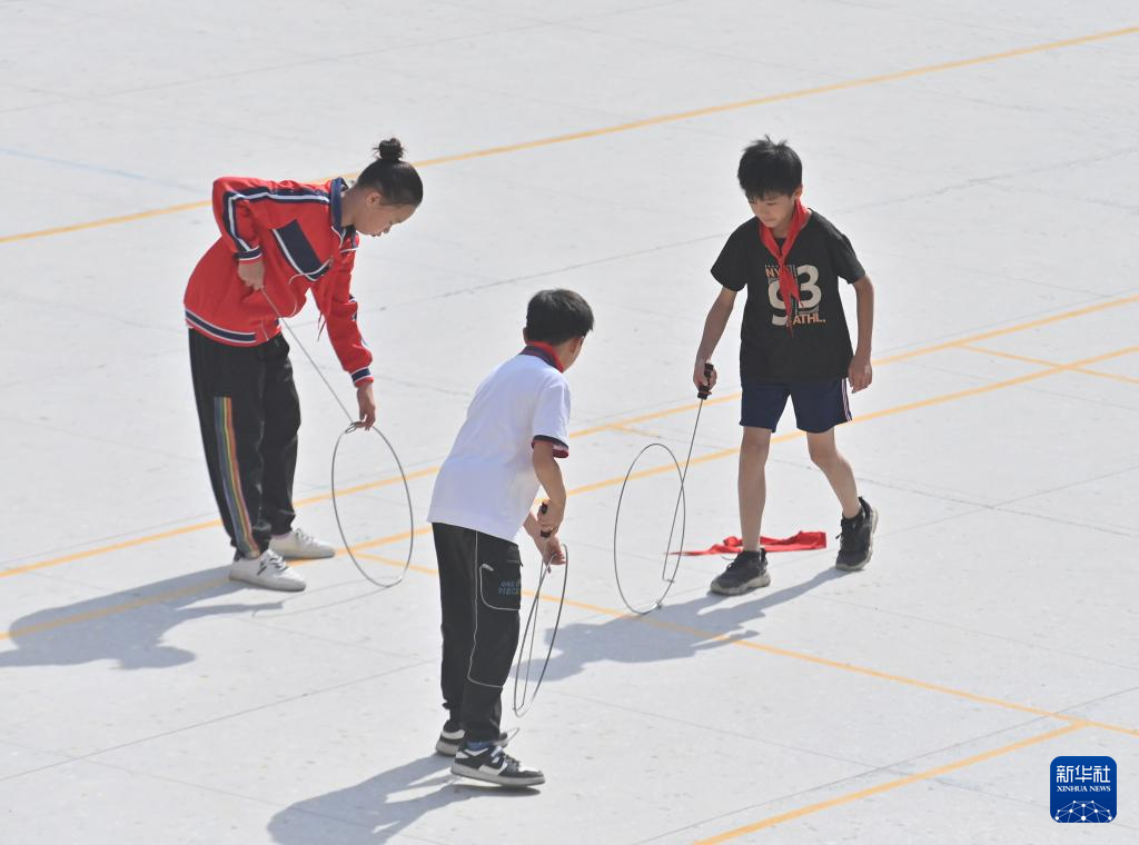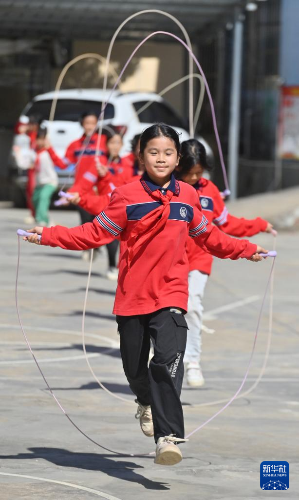 在梧州市大桥小学,学生们在体育课上练习跳绳(10月25日摄)。