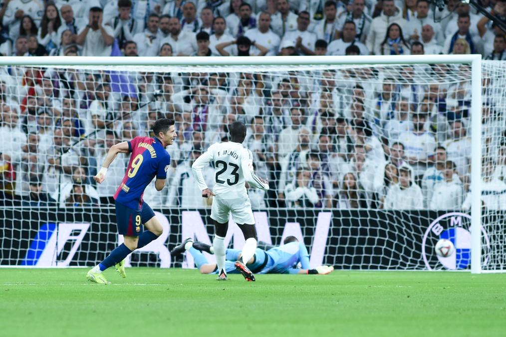 下半时,第54分钟,巴塞罗那反客为主打入一球:莱万多夫斯基接卡萨多直塞,单刀突至禁区边缘后低射破网。仅仅两分钟后,客队扩大比分:巴尔德左路传中,莱万多夫斯基小禁区边缘头球再度攻破皇马守门员卢宁的十指关。