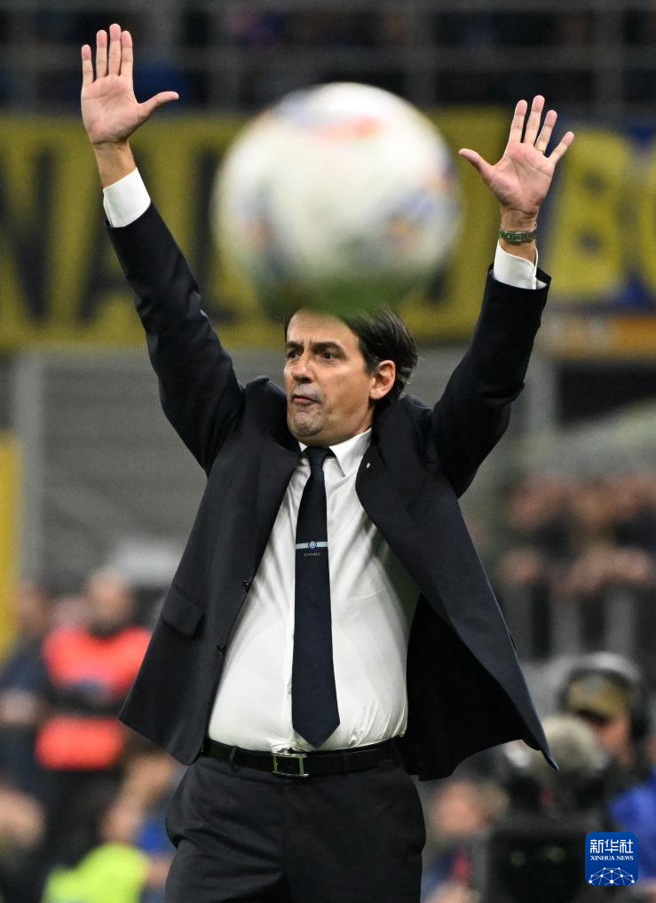10月27日,国际米兰队主教练西蒙尼·因扎吉在场边指挥。