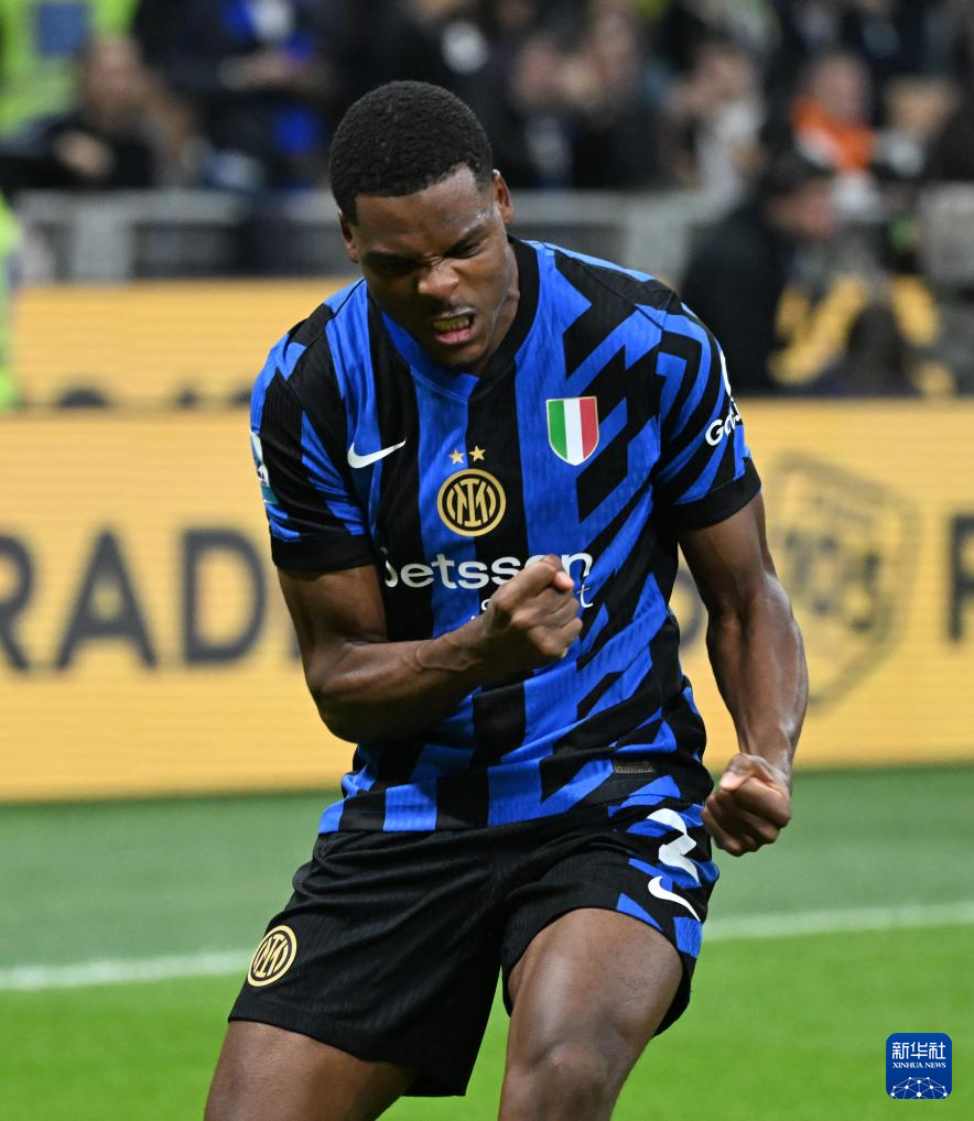 10月27日,国际米兰队球员邓弗里斯庆祝进球。
