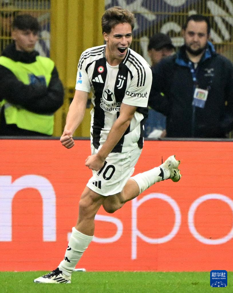 10月27日,尤文图斯队球员伊尔迪兹(左)在比赛中射门得分。