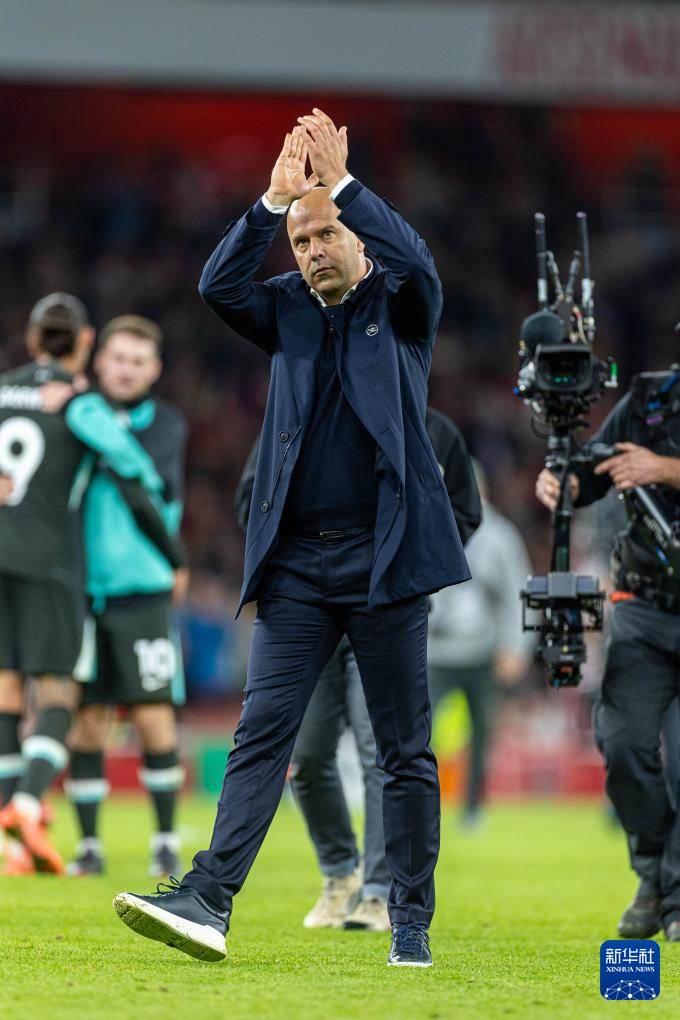 10月27日,利物浦队主教练斯洛特在比赛后向观众致意。