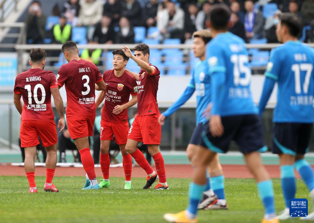 10月27日,上海海港队球员(左)庆祝进球。