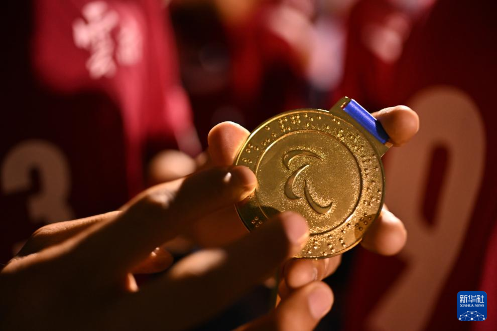 10月28日,云南队球员刘猛夺冠后触摸金牌上的盲文。
