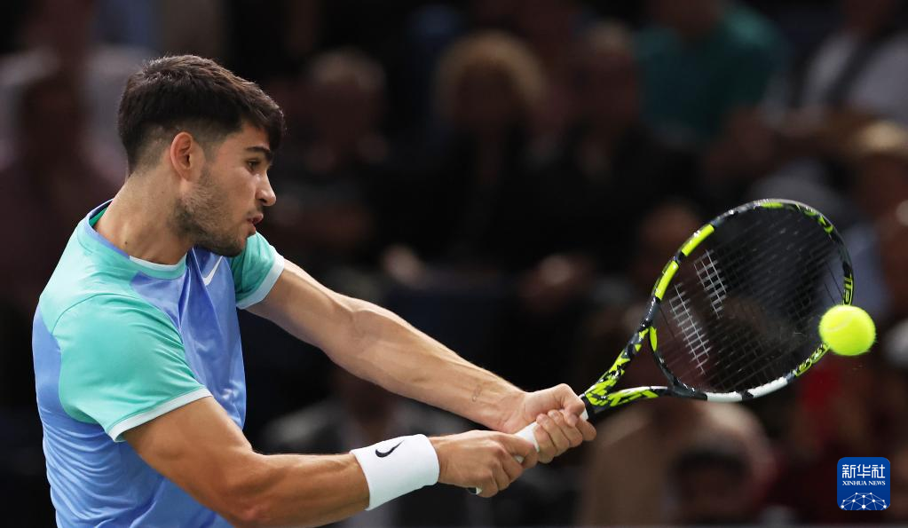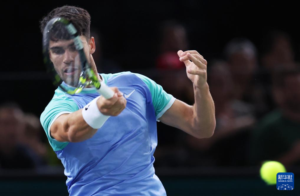 10月31日,阿尔卡拉斯在比赛中回球。