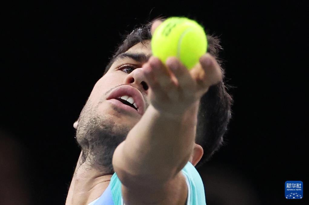 10月31日,阿尔卡拉斯在比赛中发球。