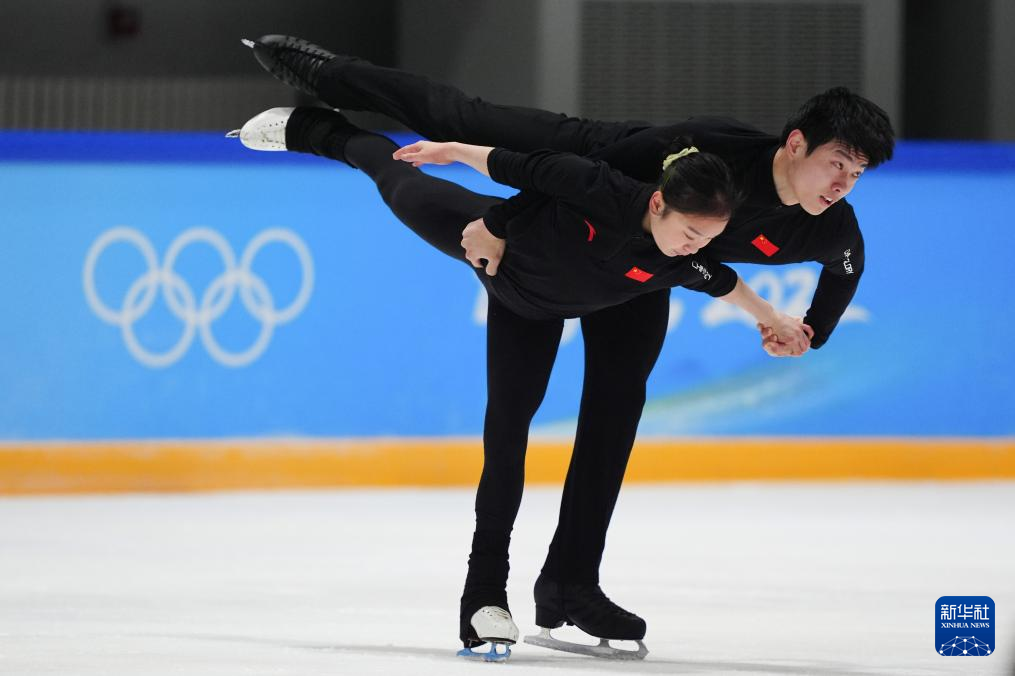 11月1日,青年双人滑组合张轩绮(左)和丰闻强在训练中。