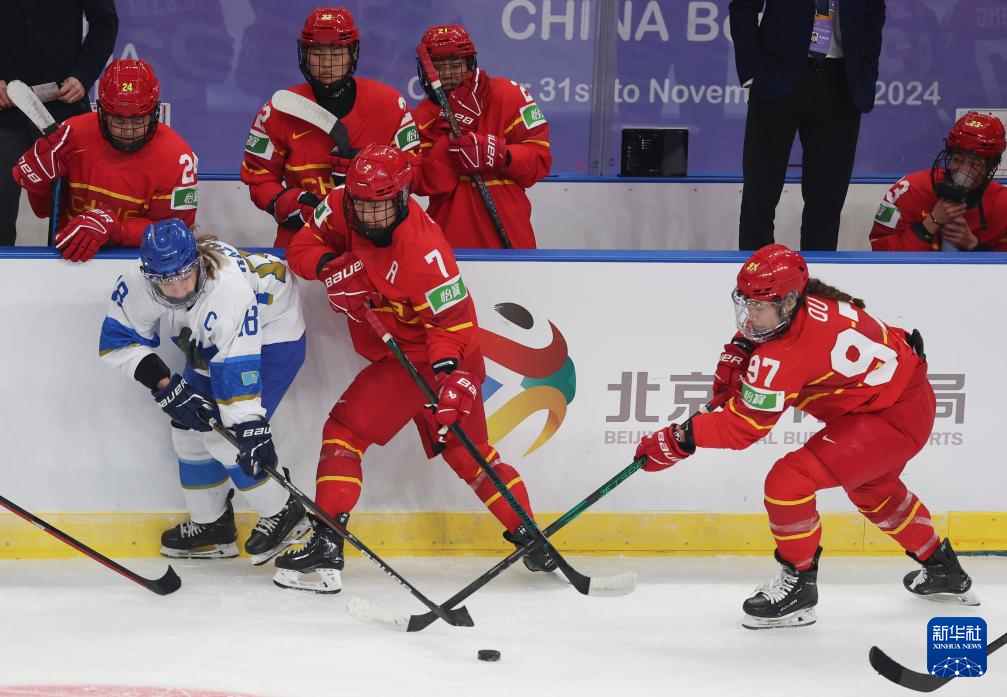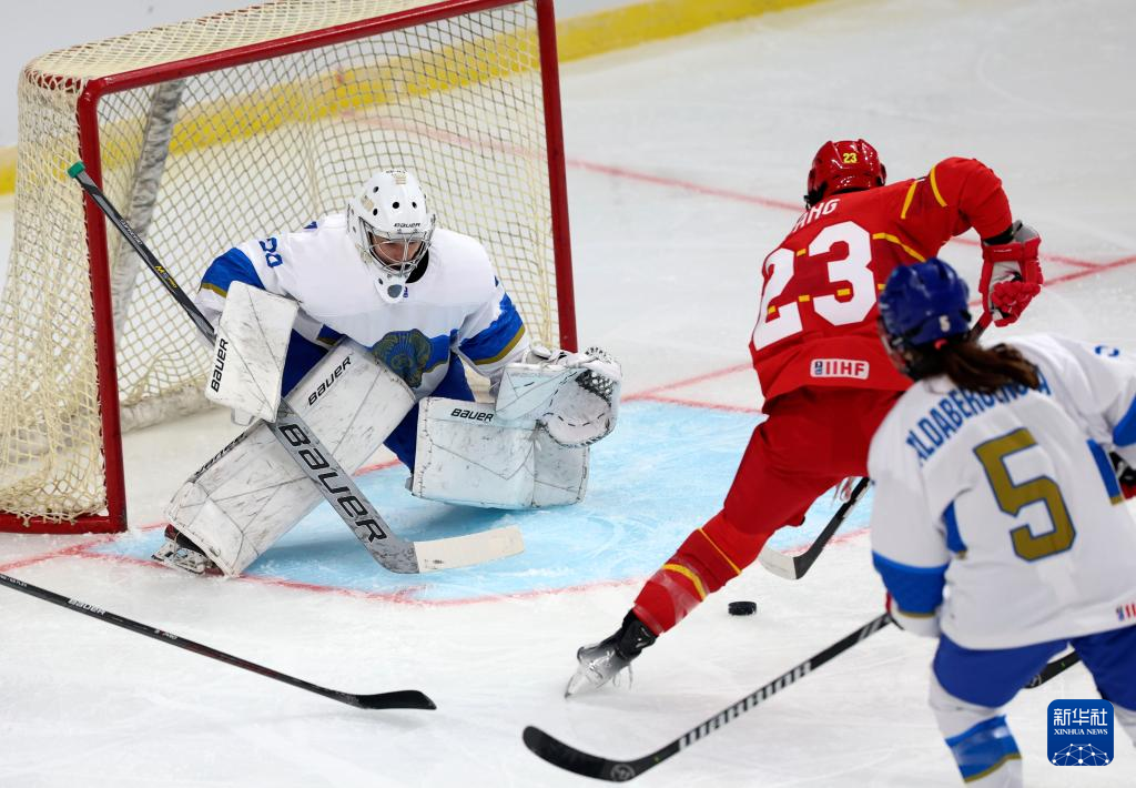 当日,北京首钢冰球馆举行的2025国际冰球联合会亚洲女子冰球锦标赛首个比赛日中,中国队5比0战胜哈萨克斯坦队。