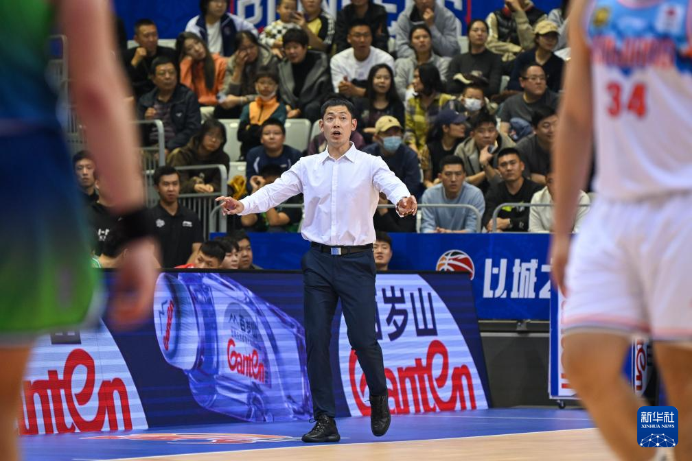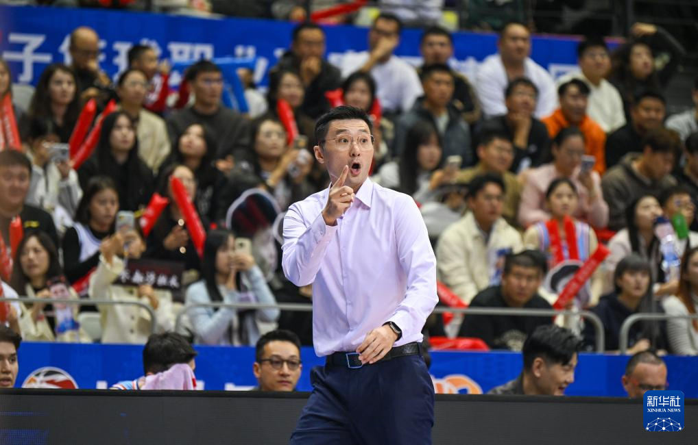 11月1日,新疆伊力特队主教练刘炜在场边指挥。