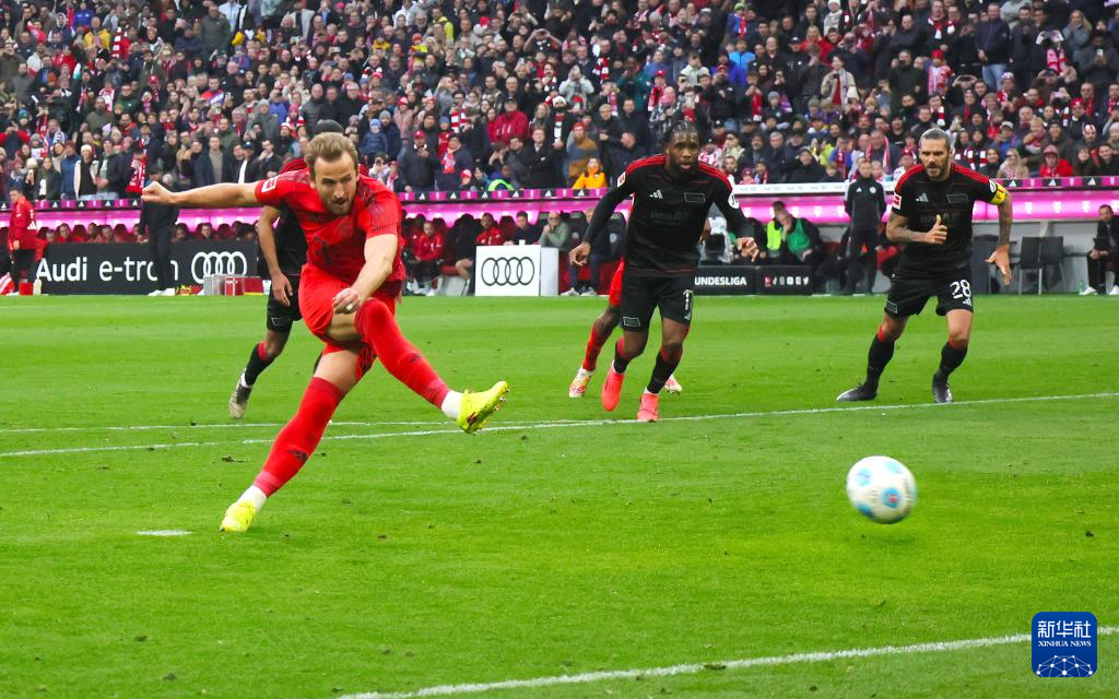 11月2日,拜仁慕尼黑队球员哈里·凯恩(前)在比赛中主罚点球破门。