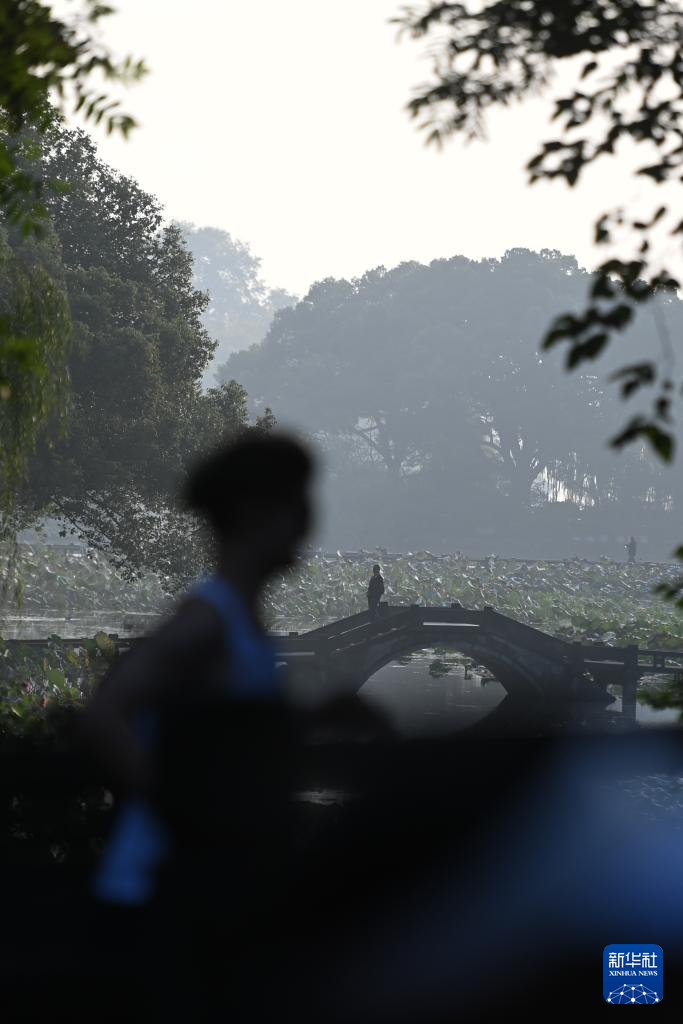 11月3日,参赛选手经过西湖景区曲院风荷附近的道路。