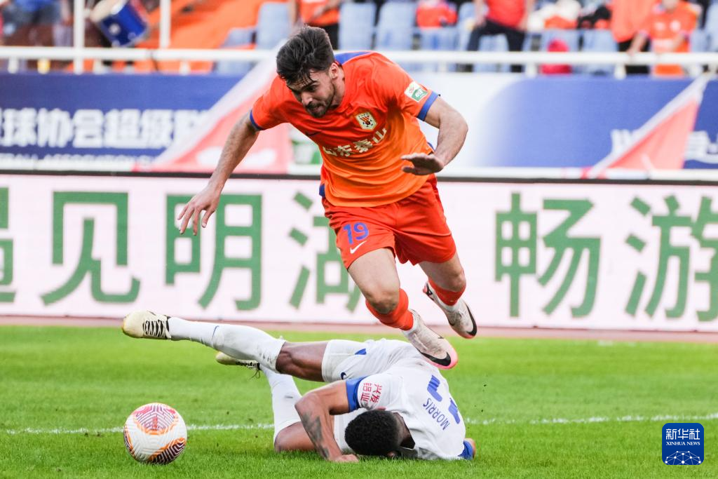 11月2日,山东泰山队球员泽卡(右)在比赛中突破。