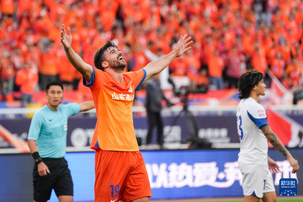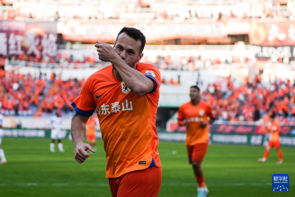 11月2日,山东泰山队球员泽卡庆祝进球。