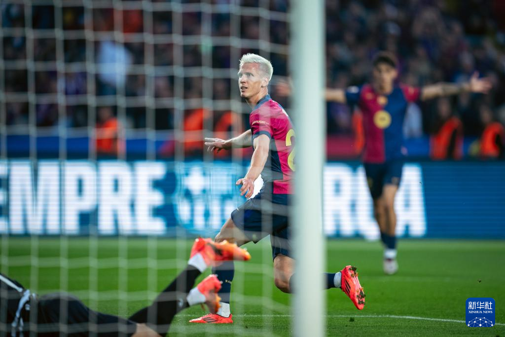 11月3日,巴塞罗那队球员奥尔默在进球后庆祝。