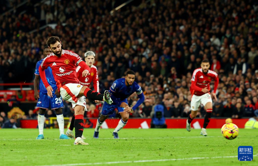 11月3日,曼联队球员布鲁诺·费尔南德斯在比赛中主罚点球得分。