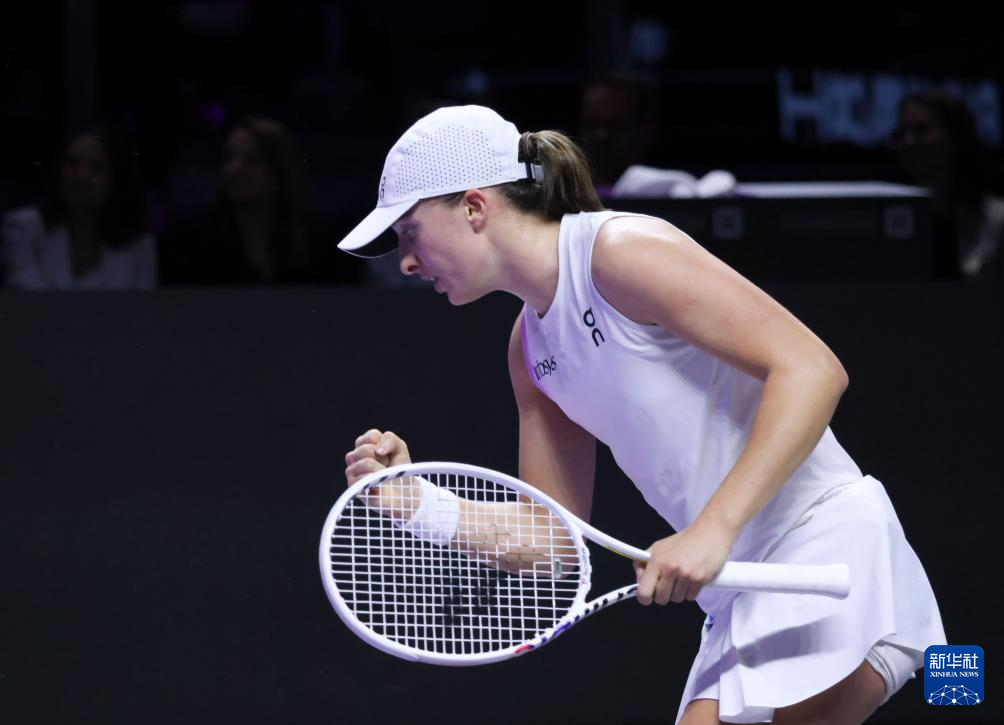 11月5日,斯维亚特克在比赛中庆祝得分。