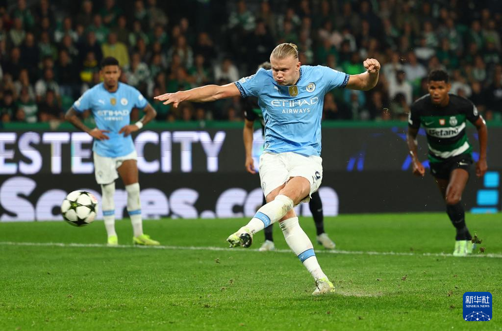11月5日,曼城队球员哈兰德主罚点球。
