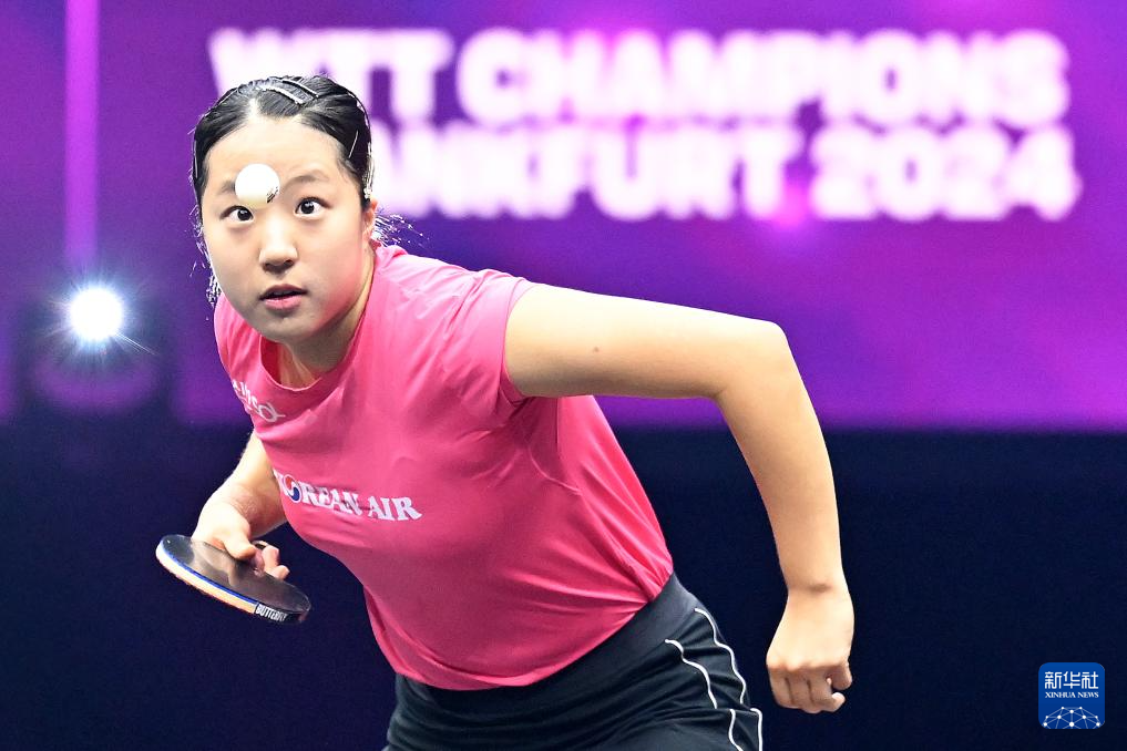 当日,在德国法兰克福举行的2024世界乒乓球职业大联盟(WTT)法兰克福冠军赛女单四分之一决赛中,中国选手王艺迪3比0战胜韩国选手申裕斌,晋级四强。
