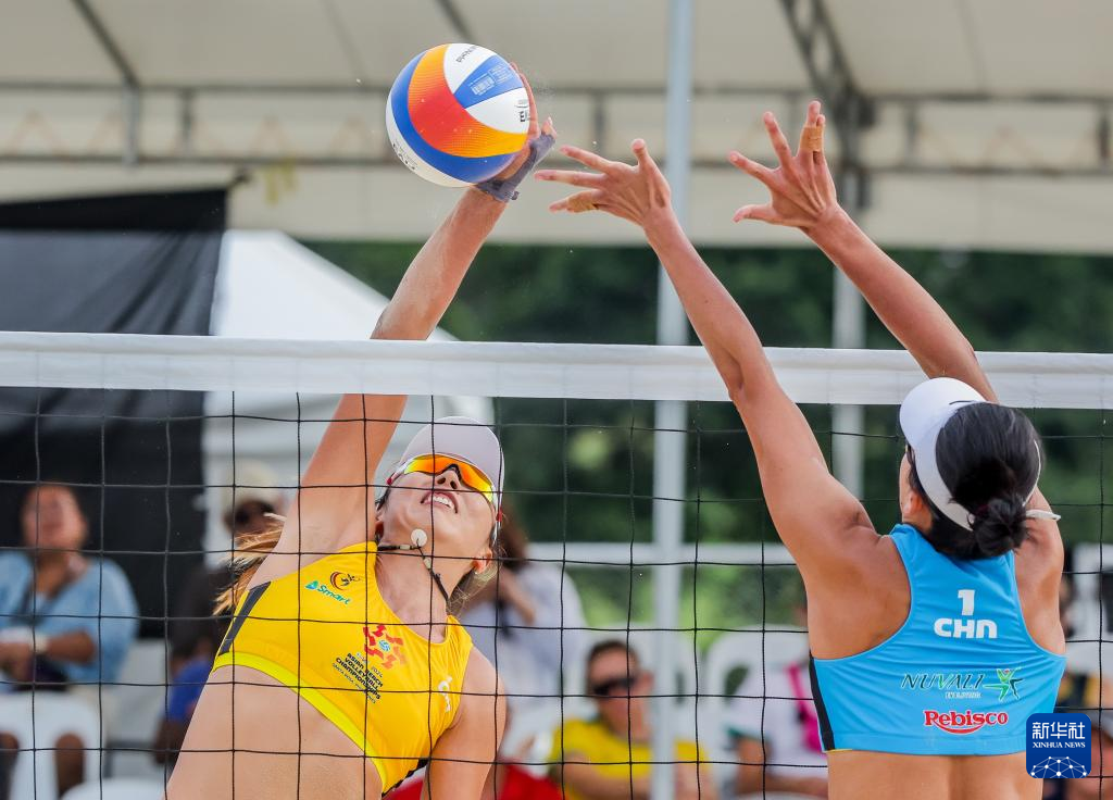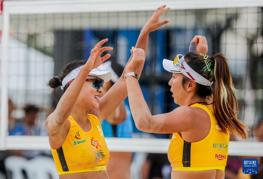 当日,在2024年沙滩排球亚洲锦标赛女子组决赛中,中国组合王婧哲/夏欣怡2比0战胜队友薛晨/曾津津,夺得冠军。