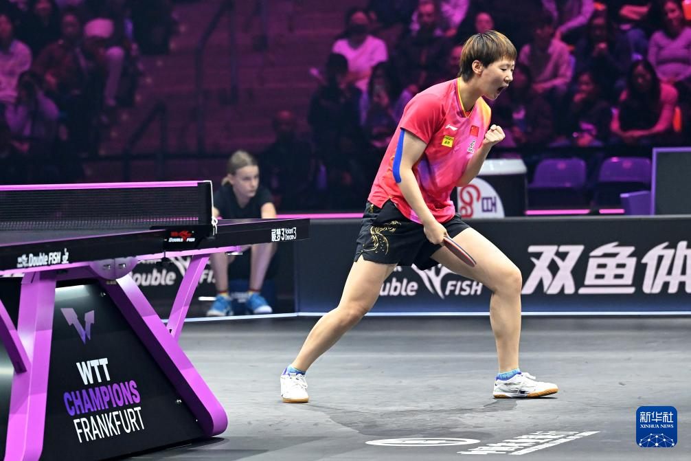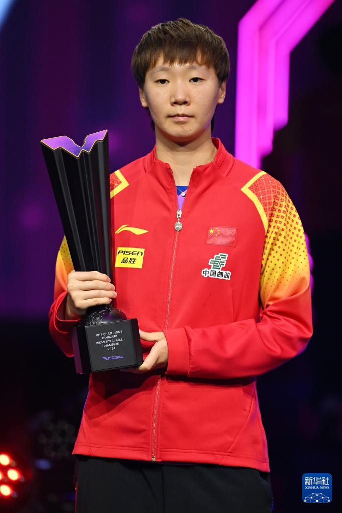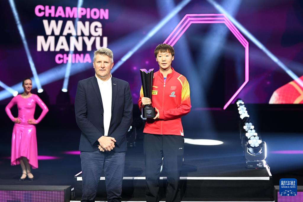 当日,在德国法兰克福举行的2024世界乒乓球职业大联盟(WTT)法兰克福冠军赛女子单打决赛中,中国选手王曼昱4比2战胜队友王艺迪,夺得冠军。