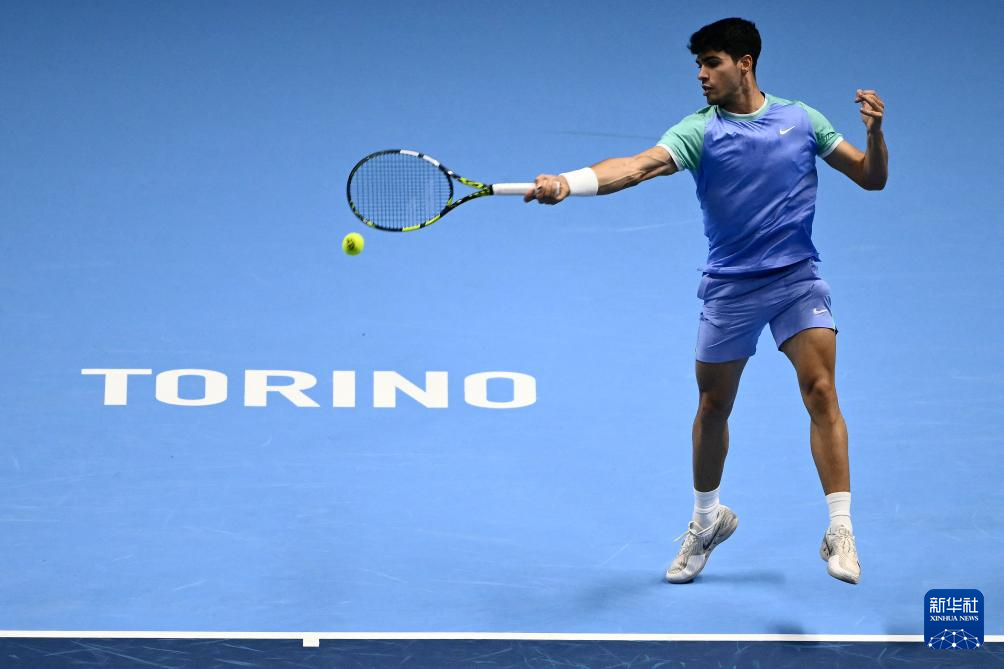 11月11日,阿尔卡拉斯在比赛中回球。新华社/路透