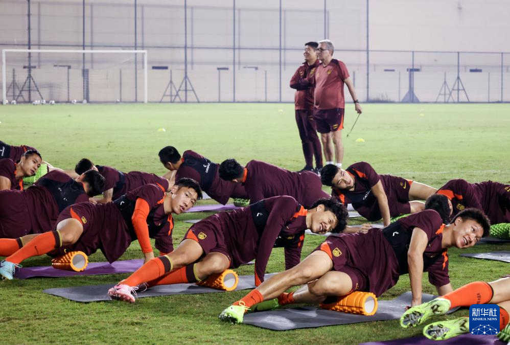 11月12日,中国国家男子足球队成员在巴林麦纳麦进行赛前训练。新华社记者 王海洲 摄