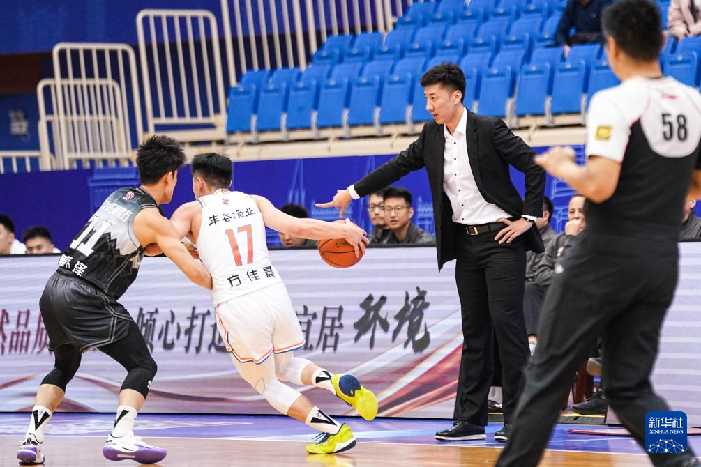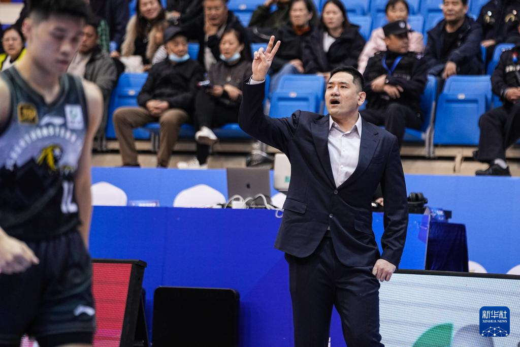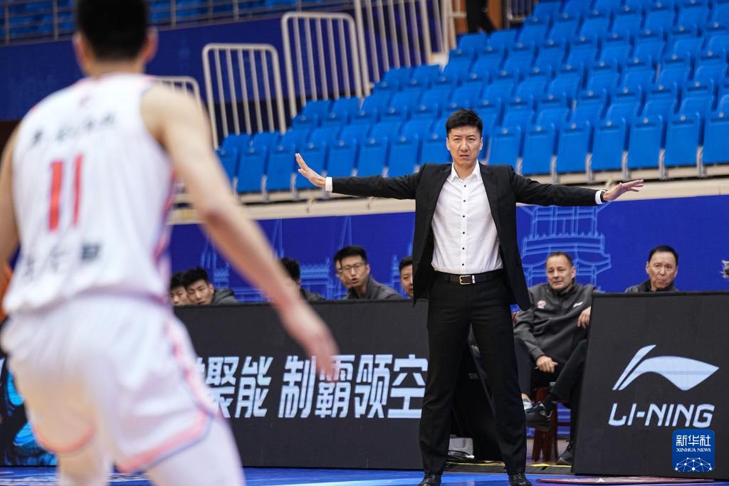11月12日,四川丰谷酒业队主教练韩硕(右)在场边指挥。新华社记者 朱峥 摄