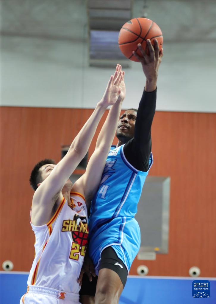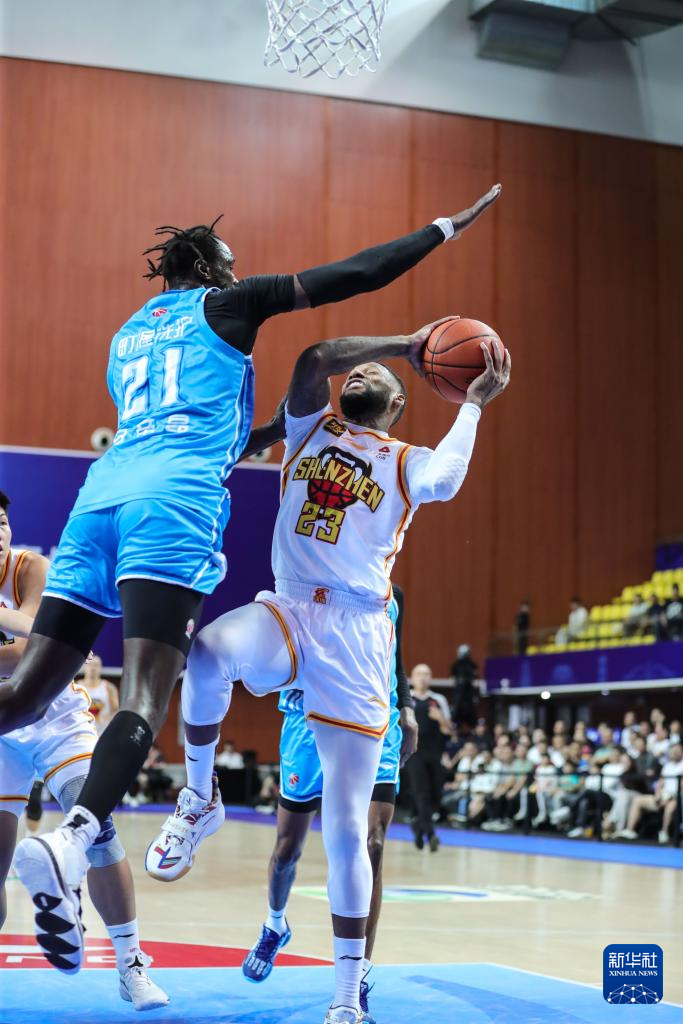 11月13日,深圳马可波罗队球员威姆斯(右)在比赛中上篮。新华社发(黄志摄)