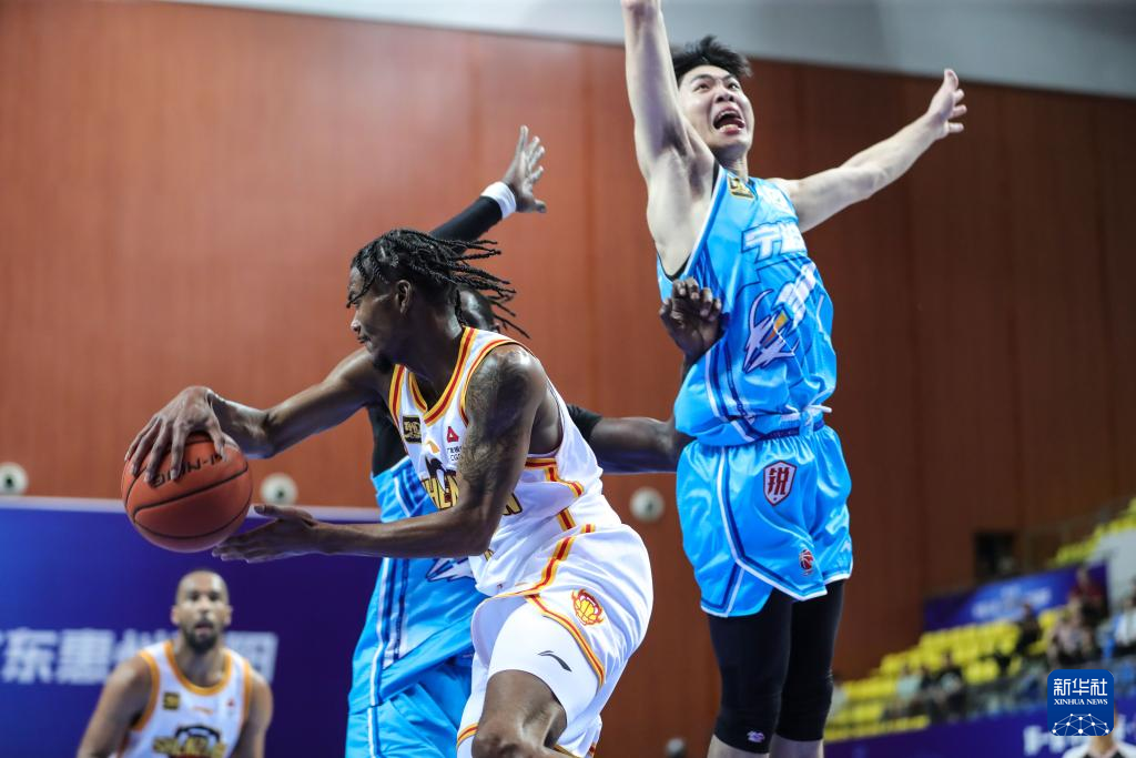 11月13日,宁波町渥队球员马奇(右)在比赛中上篮。新华社发(黄志摄)