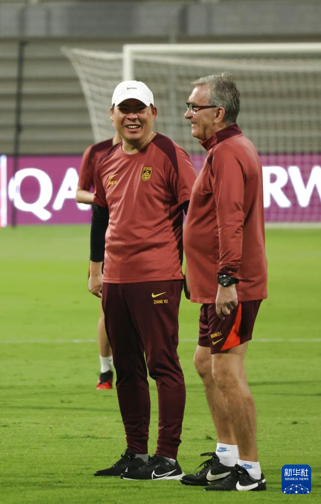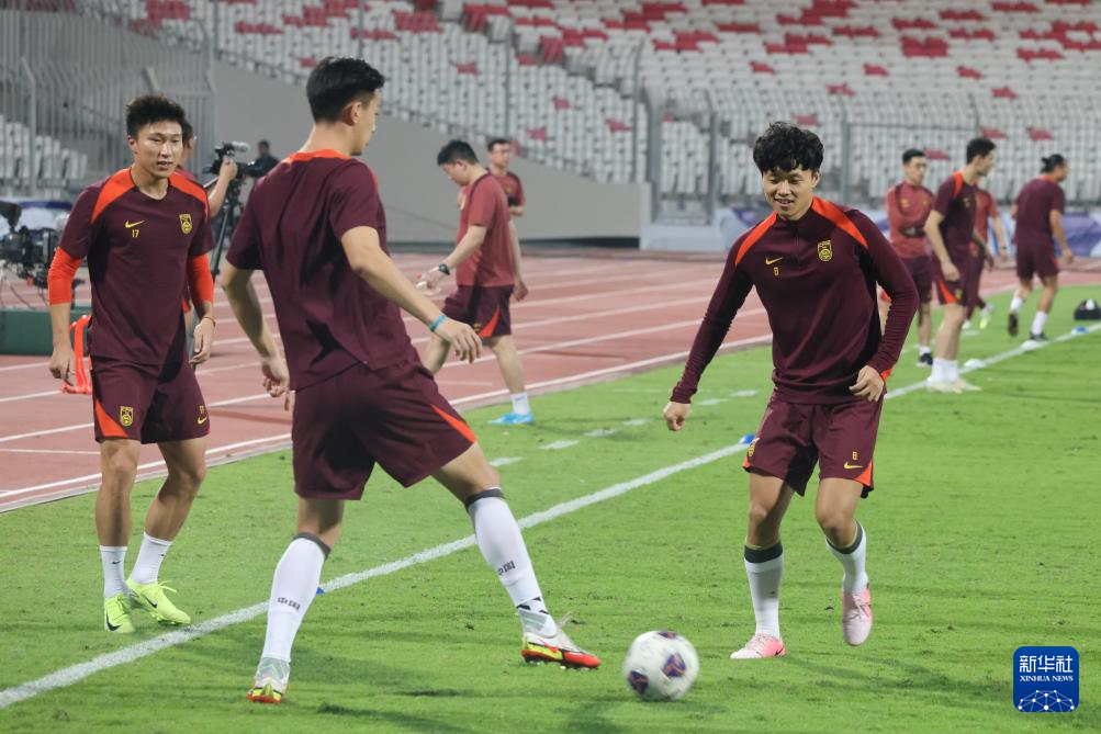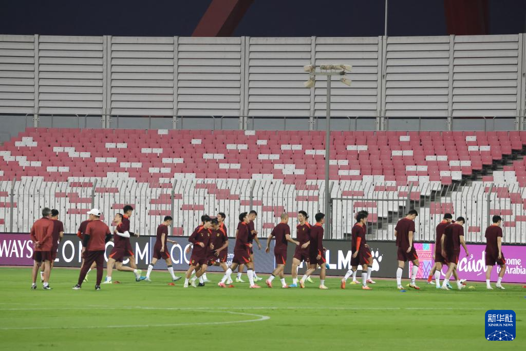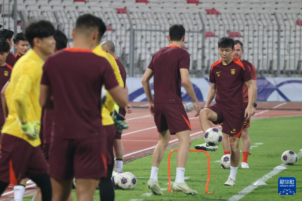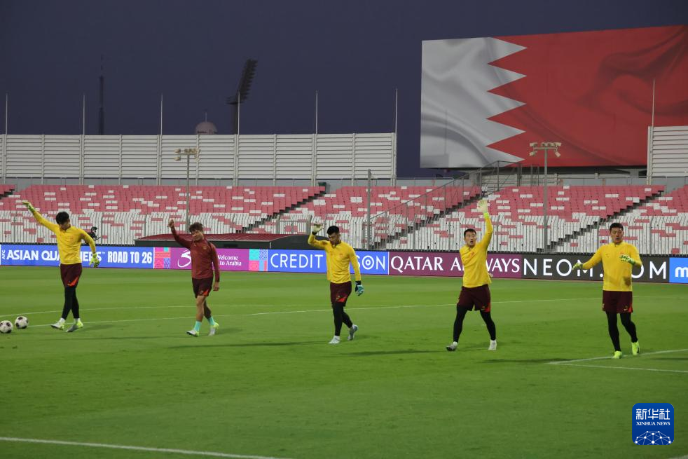 当日,中国国家男子足球队在巴林里法市训练,备战14日与巴林队的2026年美加墨世界杯亚洲区预选赛18强赛。